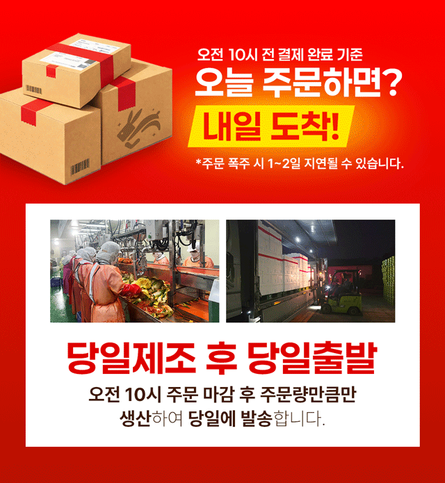 · 10시 이전 당일출고 됩니다. 택배사 사정에 따라 1~3일 소요 될 수 있습니다.