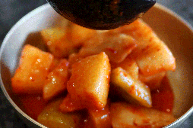 큼직하게 썰어 더 아삭한 식감과 제대로 만든 석박지
