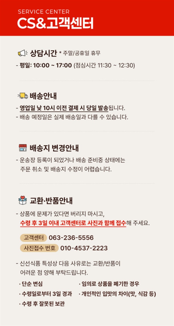 · 상품 불량 사유와 사진을 남겨 주시면 빠른 처리가 가능합니다.