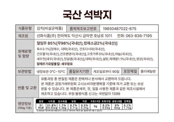 | 1. 「식품 등의 표시ㆍ광고에 관한 법률」 및 「식품등의 표시기준」에 따른 표시사항 | |